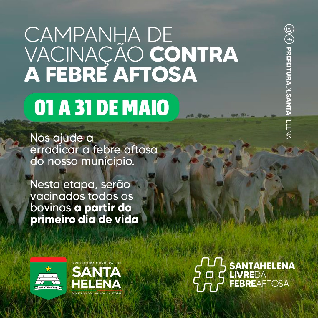 Foi iniciada no dia 01/05 a campanha de vacinação contra Febre Aftosa.